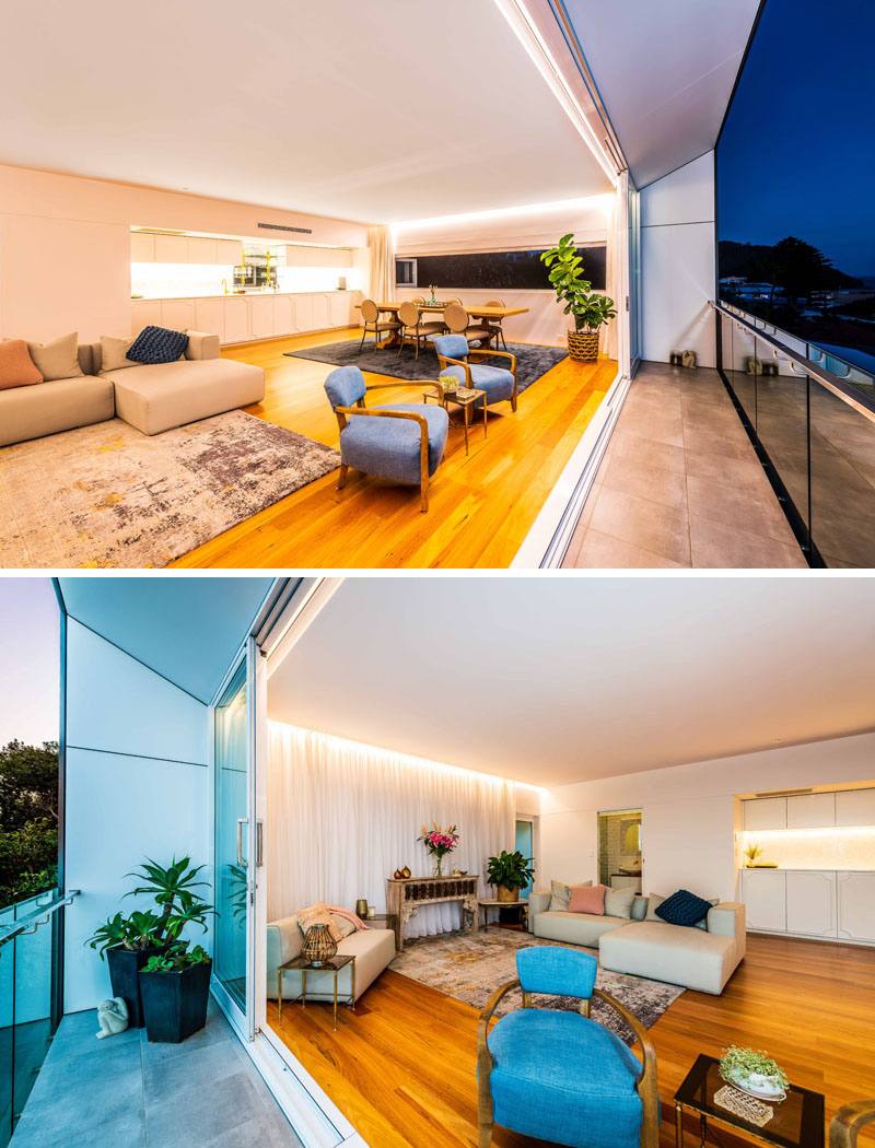 Inside, the multi-function studio space is one large room, that takes full advantage of the sweeping 180-degree views of the ocean and surrounding headlands.