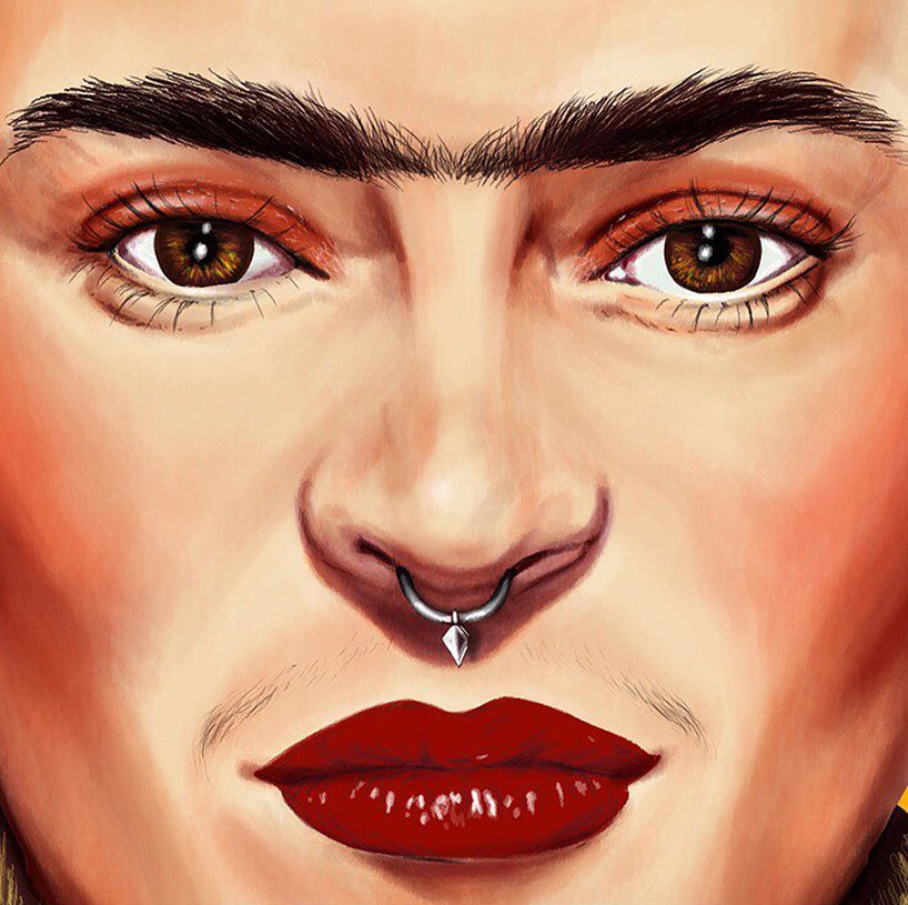 Designboom- a couple of years ago, designboom featured the work of tel aviv-based illustrator amit shimoni, who painted portraits of famous world leaders with hipster hairstyles. now, shimoni adds to this ‘hipstory’ series by reimagining the most iconic artists of the past, as try-hard cool kids of today. so, what would frida kahlo, vincent van gogh, salvador dalí, andy warhol, and pablo picasso, look like if they were tattooed, gluten-free vegans who favour a coconut latte over an americano?