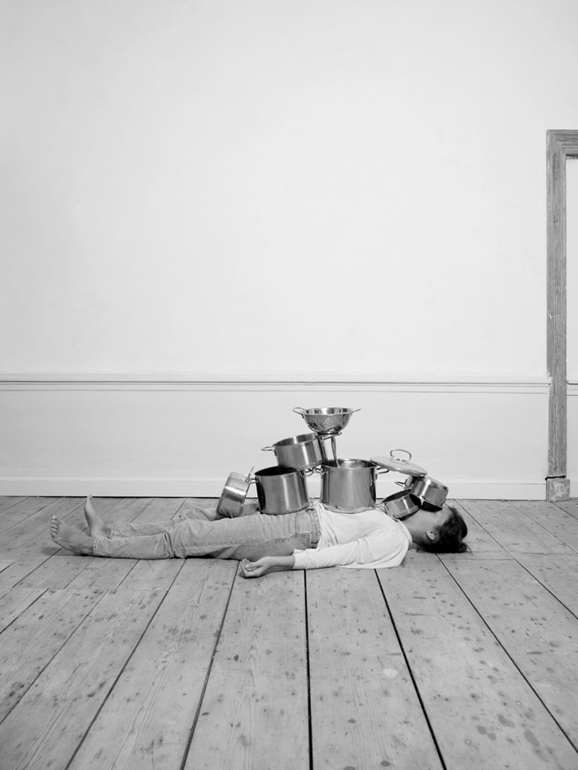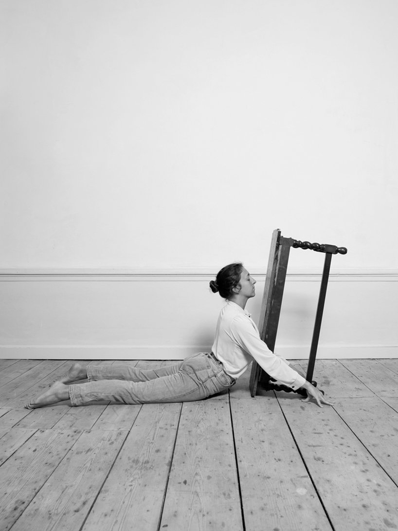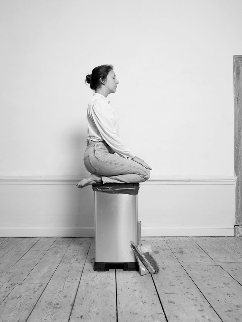 Designboom- as part of a research project on women’s position in the western society, csilla klenyánszki has created ‘house/hold’, an ironic solution for the housework gender gap and its consequences that combines a 30 minute yoga session with domestic chores. using household items as aids in a yoga sequence, the amsterdam-based, hungarian artist reflects on the limited access women have to leisure time compared to men due to the extra time they spend on unpaid work, such as domestic chores and childcare.
