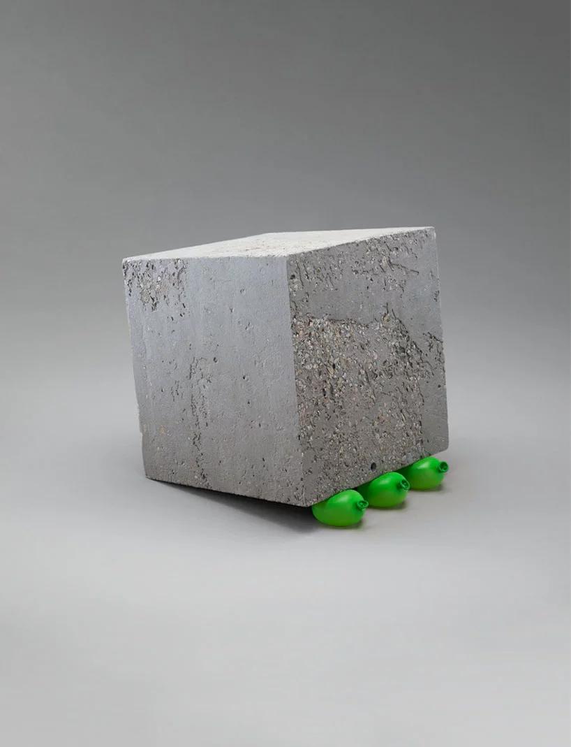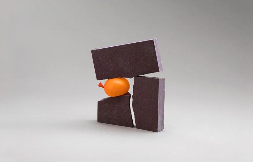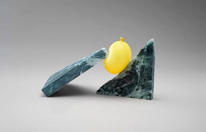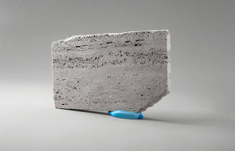 in the photo series titled ‘air‘, heavy pieces of marble and stone are specifically positioned to pressure the inflatables. the images seemingly capturing the balloon moments before it bursts. how forero does it isn’t clear. perhaps the balloons are photoshopped? more likely they are filled with cement and made to look as though they are on the verge of popping.