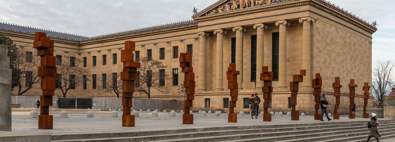the postures of each figure were initially developed through the influence of such words as lull, daze, prop, and ponder. while each word served as a catalyst for formation during his creative process, gormley regards each figure as a sculptural rorschach test, inviting the viewer to generate their own translation. the works therefore have no meaning until there is a projected recognition from the viewer. the human likeness, or memetic factor of each figure is abstracted by the materiality and architectural language of the work. the installation will be on view from january 24th through june 16th, 2019 at the philadelphia museum of art, which is currently undergoing a transformative renovation by frank gehry.