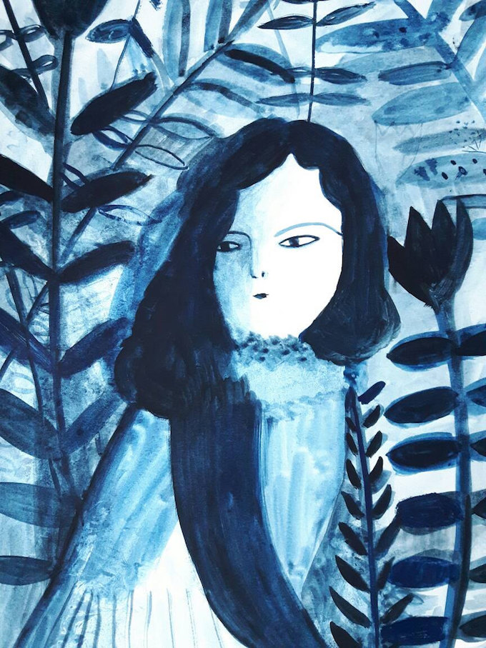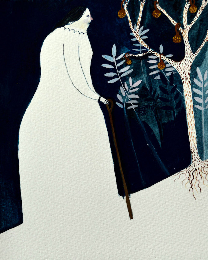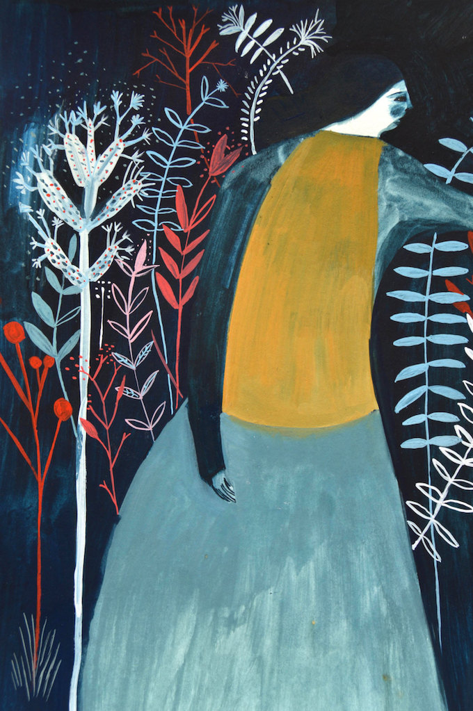 Despite that rosy (pun intended) interpretation, I like how dark these paintings are. The blue/black skies heighten the drama of each scene, as if the women are finding these flowers are on a secret quest in the middle of the night.