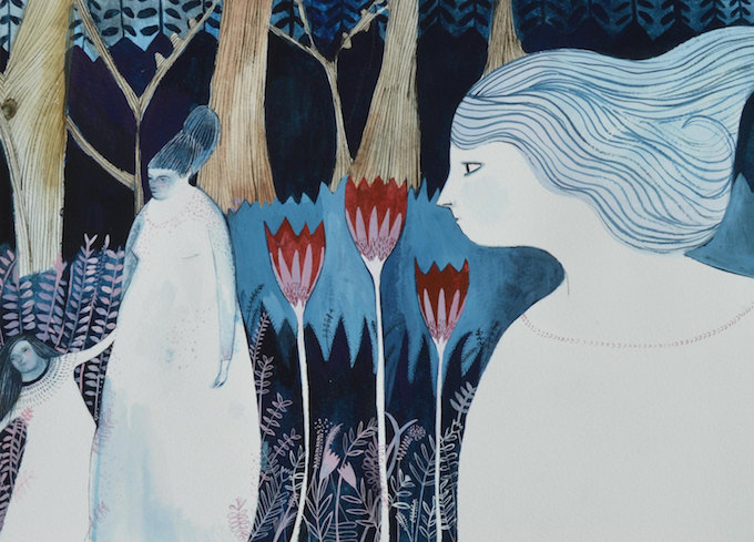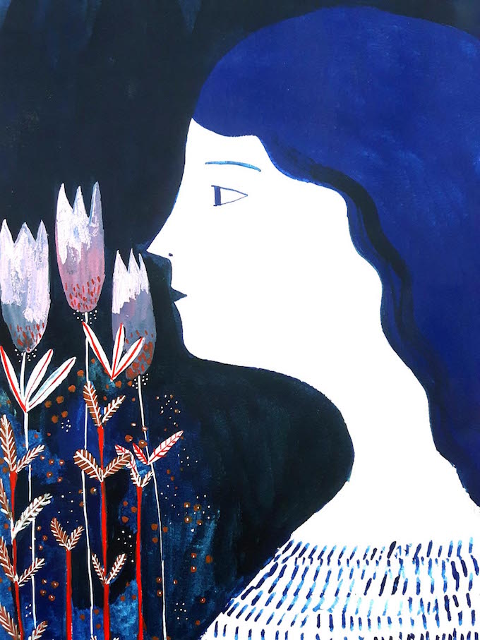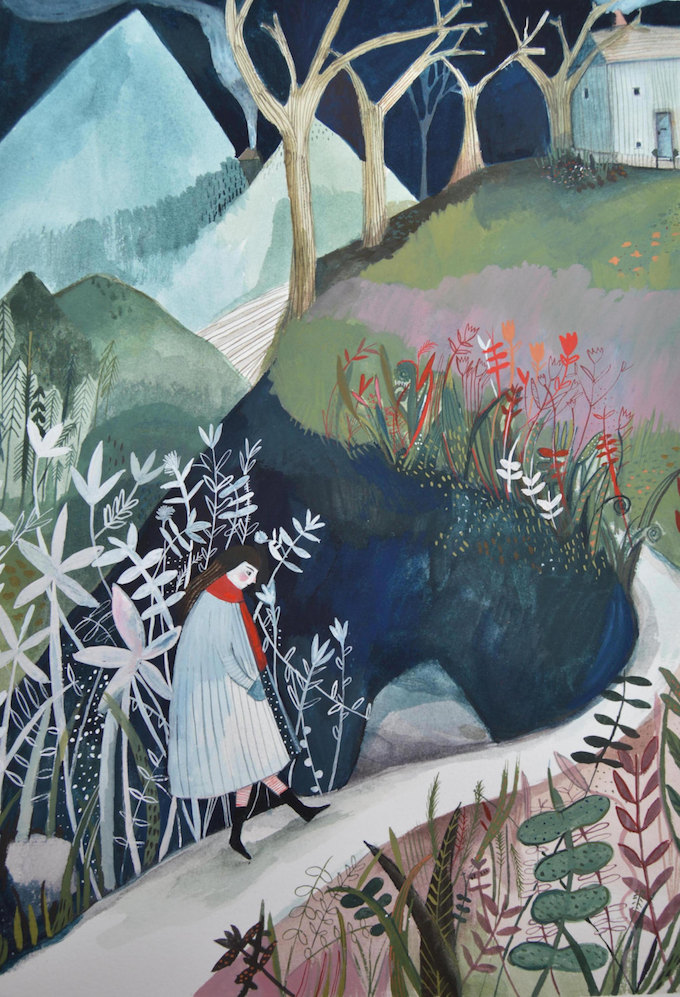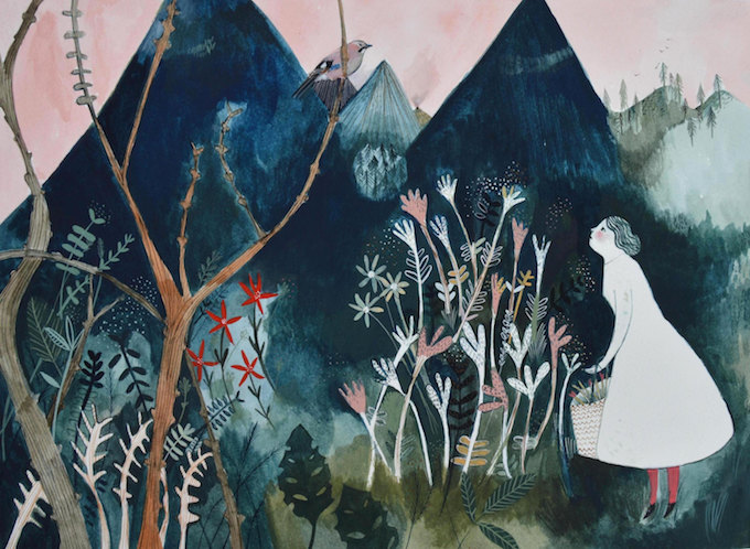 brwnpaperbag_Illustrator Melodie Stacey paints imaginary landscapes that remind us to stop and smell the flowers. Towering mountains and winding paths lead the way to blooms that are as tall as a person, showcasing a fantastical view of nature—but one that was clearly inspired by the splendor we witness in everyday life.