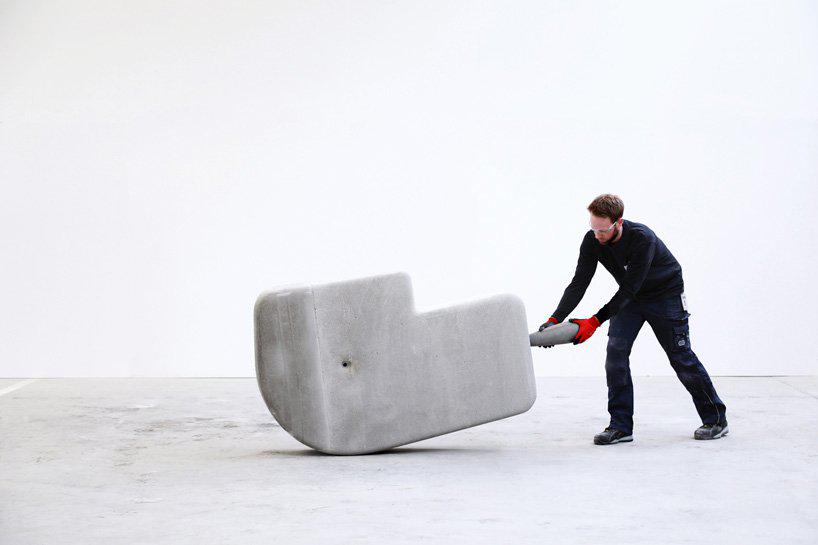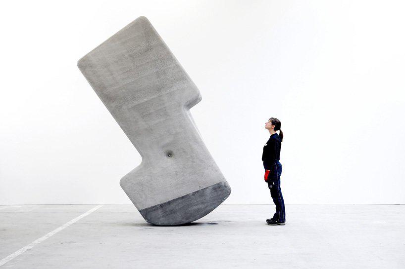designboom_cambridge-based firm matter design has unveiled research on seemingly ‘weightless’ concrete forms that can be easily moved. realised in collaboration with construction-research company CEMEX global R&D, the pair have discovered a way of rotating mammoth stones that would otherwise rely on cranes or heavy equipment.