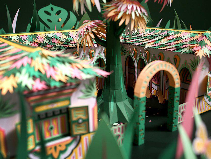 the second paper story came from zim & zou’s nobel muse, gabriel garcía márquez and his magical realism story, ‘one hundred years of solitude.’ the yellow and green scene constructed by zim & zou might capture a part of mocando — a fictional town in columbia, founded by marquez’ patriarchal character and described in prose over the course of multiple generations.