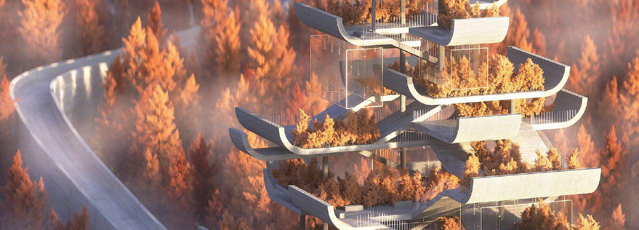 designboom_characteristically associated with the buddhist temples of east and southeast asia, the ancient typology of the pagoda remains largely untouched by the evolving architectural styles and movements over time. following his travels through china, shanghai-based architect amey kandalgaonkar presents a fictional re-interpretation in concrete of the traditional building style. the designer comments: ‘while the entire world was swept by the modernist movement, china was largely untouched by modernism. so when I visited various ancient chinese monuments, i couldn’t help wonder how a modernist mind would interpret traditional chinese architecture.’