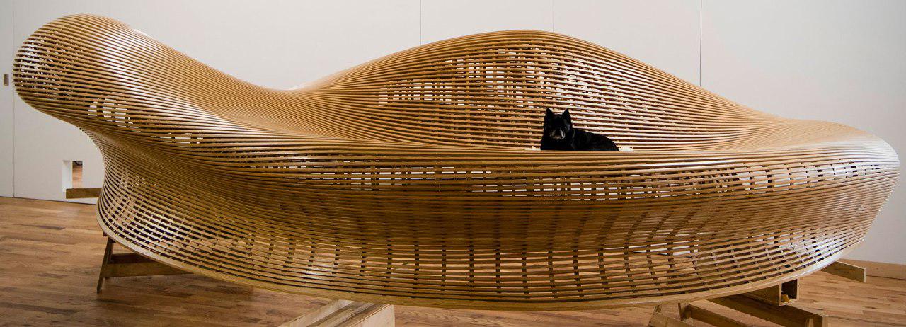 curated by hannah martin, TIMBER! at wanteddesign brooklyn presents an ecosystem of works in wood, with pieces ranging from super-scaled sculptural benches, to small stools seemingly sourced from the forest floor.there’s matthias plessnig, who uses white-hot steam to mold long strips of wood into wild organic forms; egg collctive, a trio of designers who bring their background in art, architecture and woodworking to a line of elegant furnishings; and stephen talasnik, whose architecturally-inspired works turn birchwood into otherworldly sculptures.