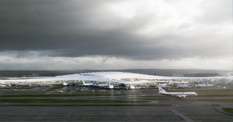 designboom_MAD architects, led by ma yansong, has released its design for a proposed new terminal at harbin taiping international airport. from above, the terminal appears as a snowflake, referencing the region’s immense amounts of snow that falls in the region. the design simultaneously mimics the gentle slopes of china’s vast northern plains with an undulating topography that rises and falls in response to the building’s program.