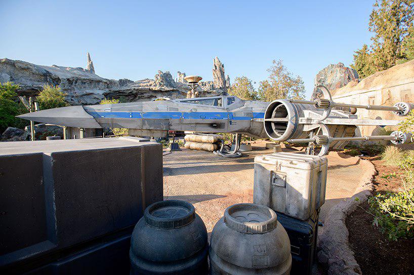 but the millennium falcon is not the only famous ship present at galaxy’s edge. the new star wars theme park also features some of the most famous ships from the saga, like a few x-wings — the versatile rebel alliance starfighter that balances speed with firepower; or the a-wing — conceived for high-speed surgical strikes, deep reconnaissance and escort fighter duty; or even luke skywalker’s landspeeder, used to get around tatooine, his home planet.