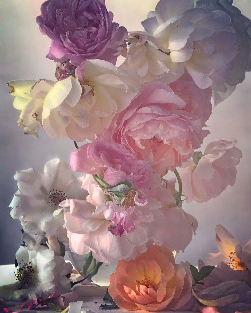 knight picks the flowers from the garden of his david chipperfield-designed house in south-west london, arranging them under the natural daylight, which decorates his kitchen table. the result is a series of images that capture the fragility of a rose’s life cycle. bruised petals fall onto buds in various stages of blossom and broken stems make way for impossible compositions.