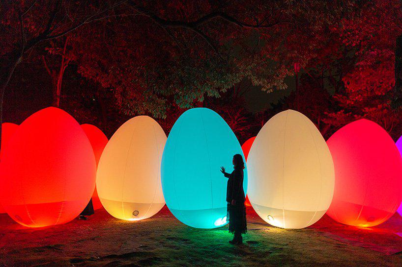 designboom_for the third time, teamLab returns to the shimogamo shrine to hold the digitized forest — an exhibition that turns nature into art without harming it — in kyoto. this year’s show has expanded, turning both the tadasu forest and the shimogamo shrine into an art space that changes ones visitors immerse themselves in the brightly-lit pieces.