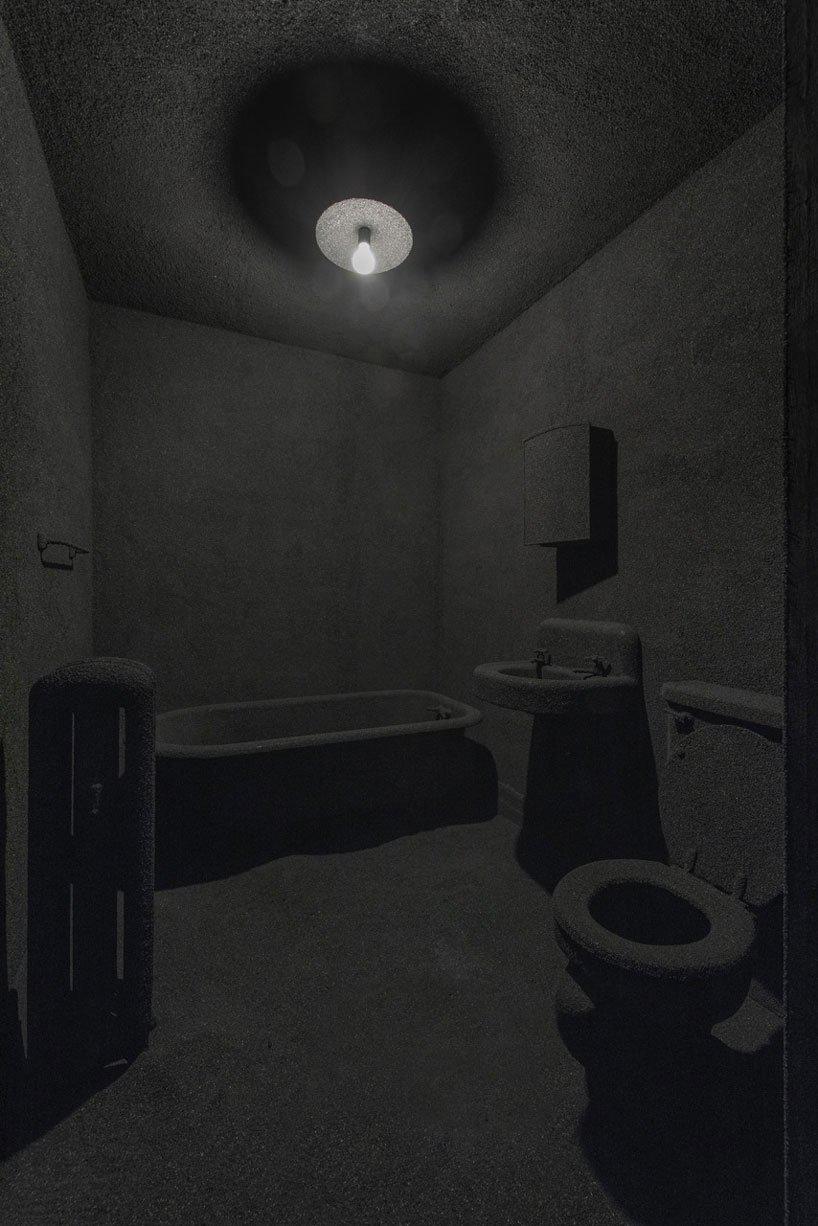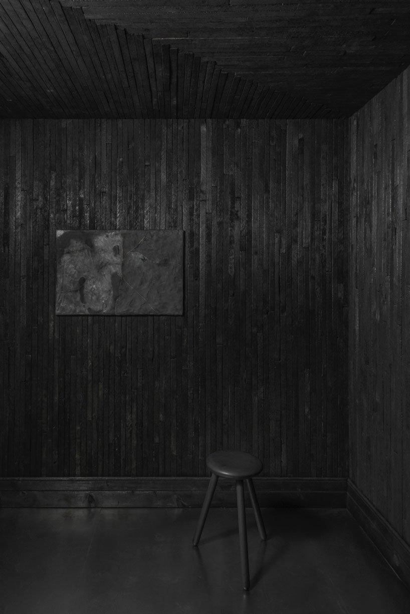 designboom_an interior of charred wood, molten glass, and black ceramics characterizes the site-specific installation by danish artist anders ruhwald, soon to be on view at the upcoming detroit art week. entitled ‘unit 1: 3583 dubois,’ the work fills a 1,700 square foot apartment to recall the domestic space at 3585 dubois street in detroit — an address which no longer exists. while the building’s exterior is visually consistent with its neighbors, the dismal interior has been transformed to suggest that it had been raged by a great fire.