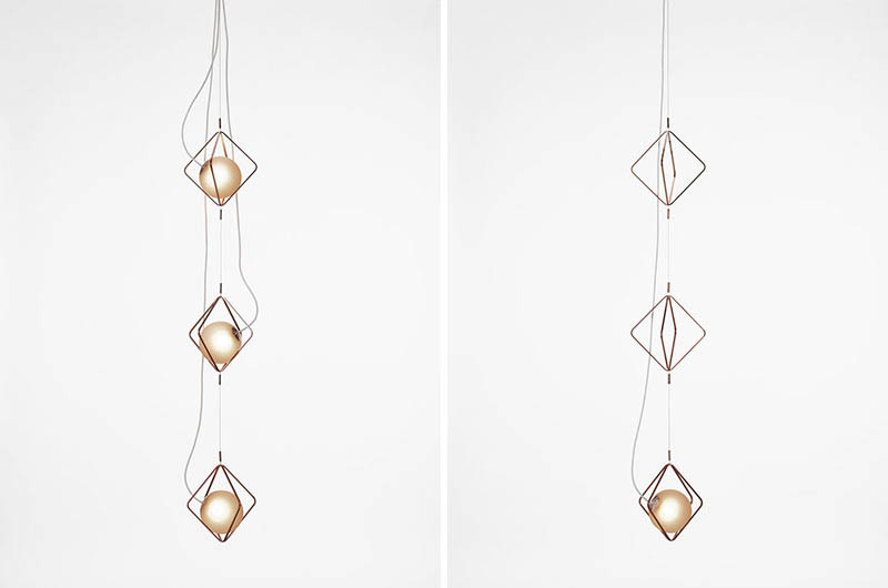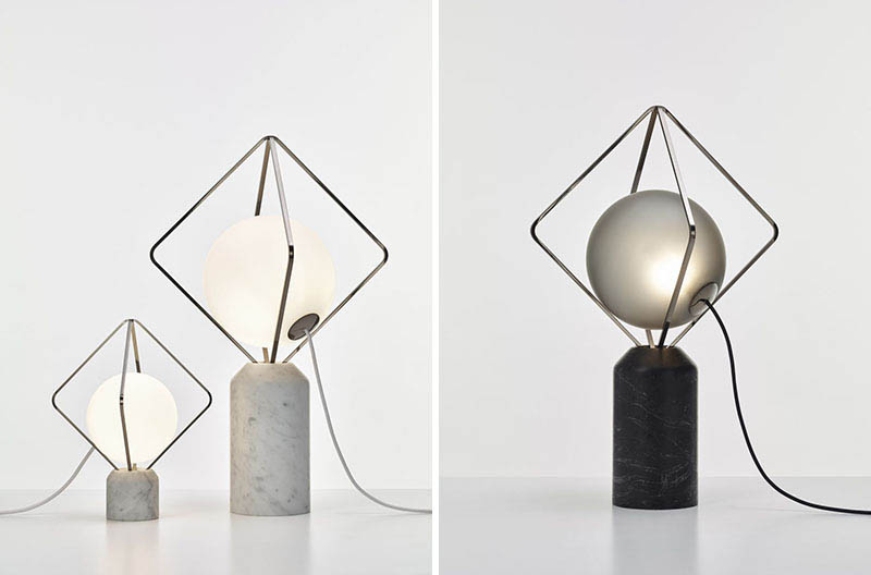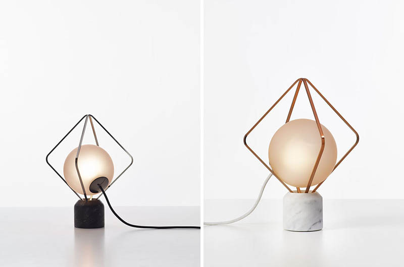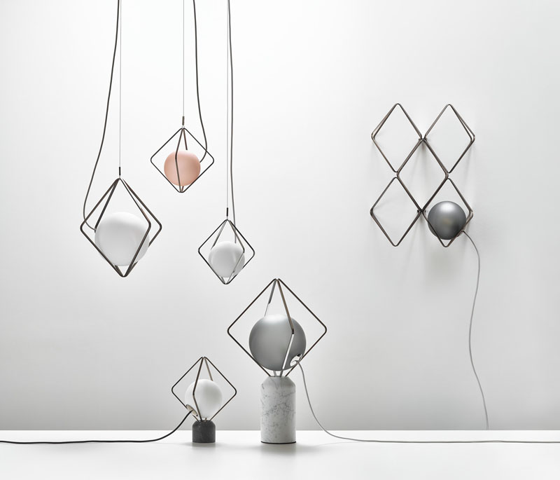Contemporist_ Lucie Koldova has designed the Jack o’Lantern lighting collection, that has subtle metal frames holding a luminous pearl in the form of a handblown matte glass sphere.