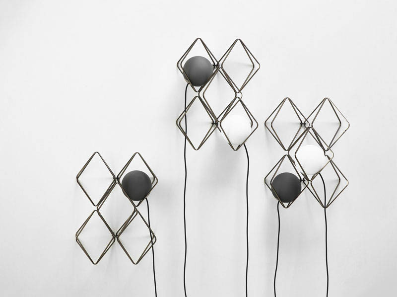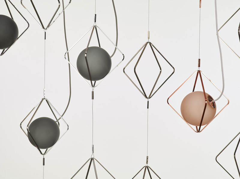 Lucie Koldova has designed the Jack o’Lantern lighting collection, that has subtle metal frames holding a luminous pearl in the form of a handblown matte glass sphere.