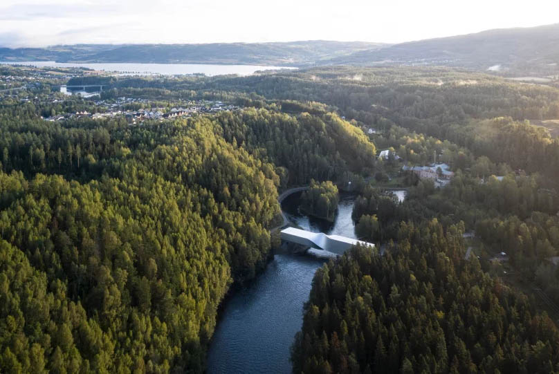 kistefos comprises a museum and sculpture park at jevnaker, a municipality 80 kilometers (50 miles) north of oslo. established in 1996 by norwegian businessman and art collector christen sveaas, on the former site of his family wood pulp business, kistefos’ sculpture park includes works by leading international artists such as anish kapoor and marc quinn, among others. BIG’s ‘art bridge’ completes the park’s cultural route, allowing visitors to experience the outdoor artworks as part of a continuous loop.