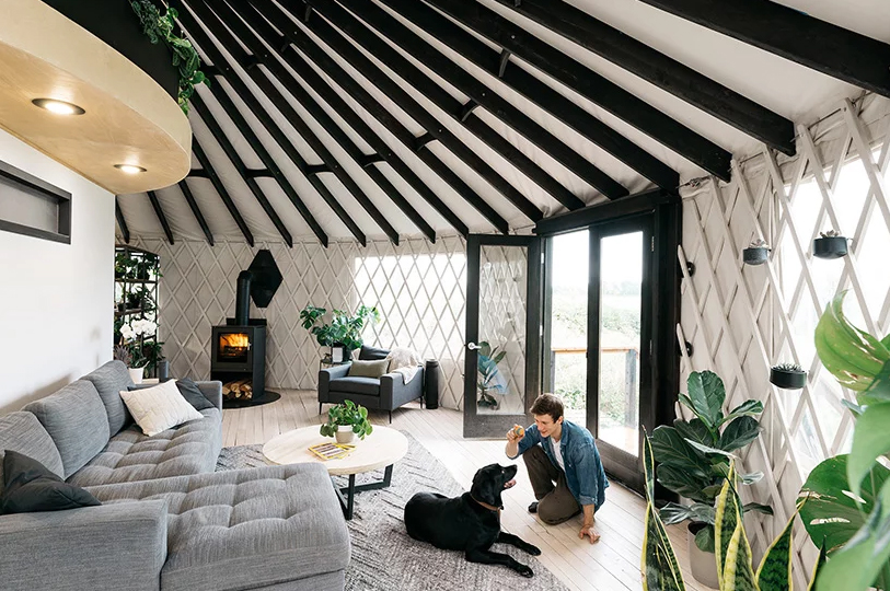 couple builds botanical, light-filled yurt with a circular sleeping loft and skylight