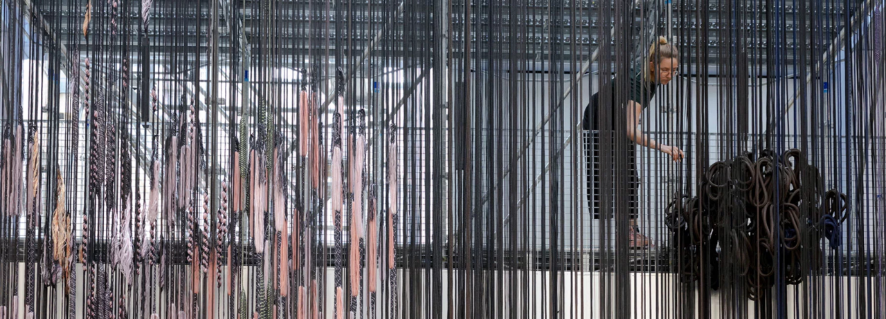 ‘interlace’ exposes the viewing public to the textile production process in order to create awareness, revaluation and appreciation for textiles. it shows what consumers don’t often see: the research and experimentation, the tools and materials, the trial and error that are as important as the result itself. throughout the three months of the exhibition, the public will be able to see new textile pieces being woven in the gallery space. on september 6th, 2019 a symposium is to be held at the foundation which will discuss weaving techniques and technologies as well as the social implications of modern textile production.