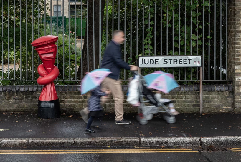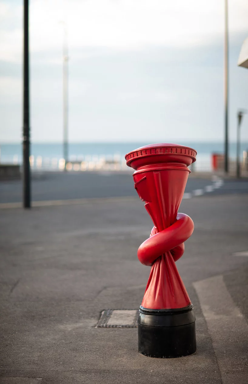 Designboom_ british artist alex chinneck has installed a series of ‘knotted’ postboxes across the UK. the surrealist sculptures, which form part of a new artwork called ‘alphabetti spaghetti’, appear in london, margate in kent and tinsley in sheffield.