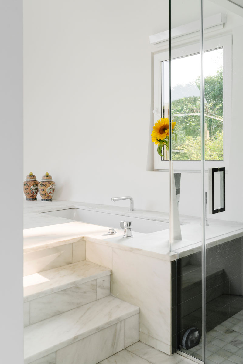 The built-in bath can be accessed from the bathroom too, via a couple of steps.