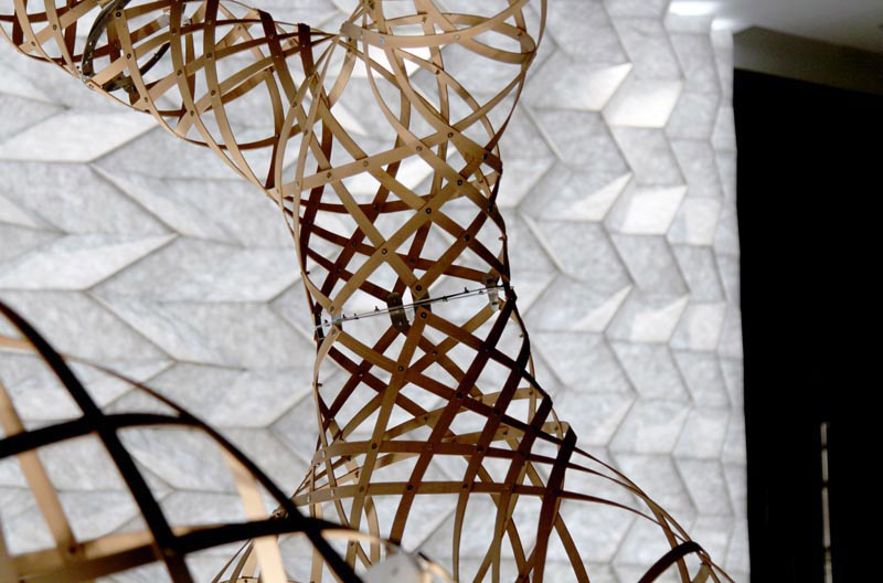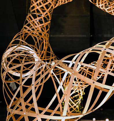 The installation is an exploration of the inherent material behaviors of bamboo and has been inspired by the craft-based practice of weaving.