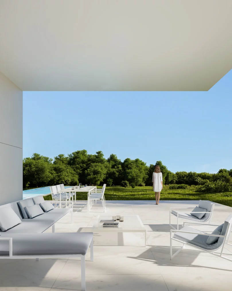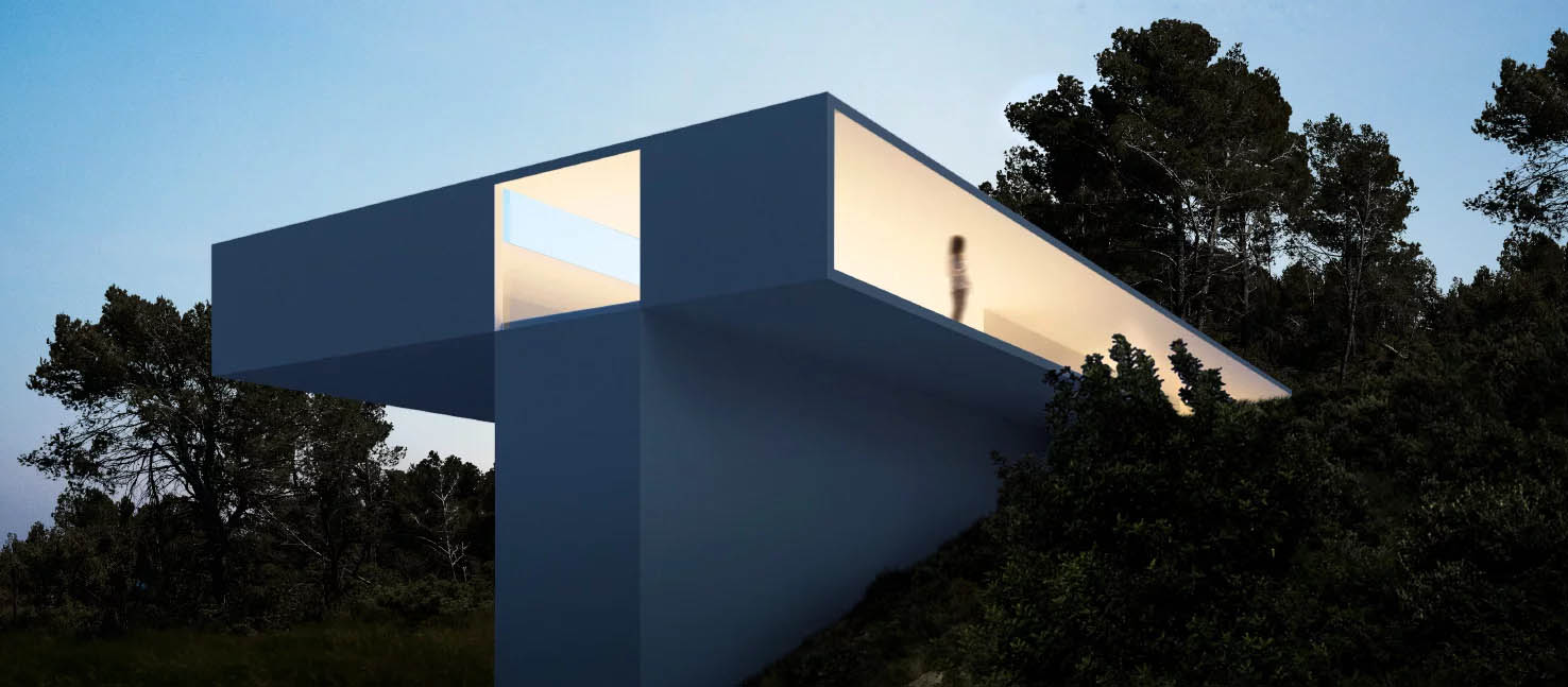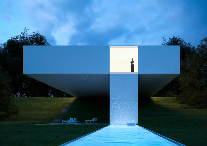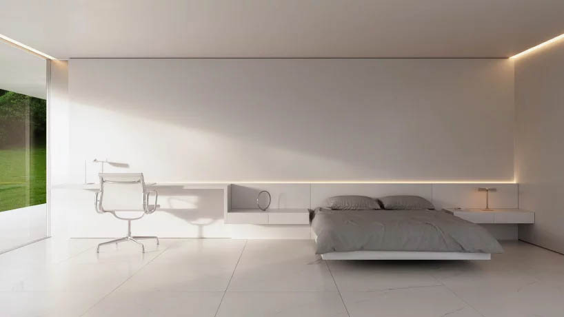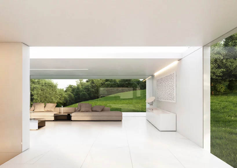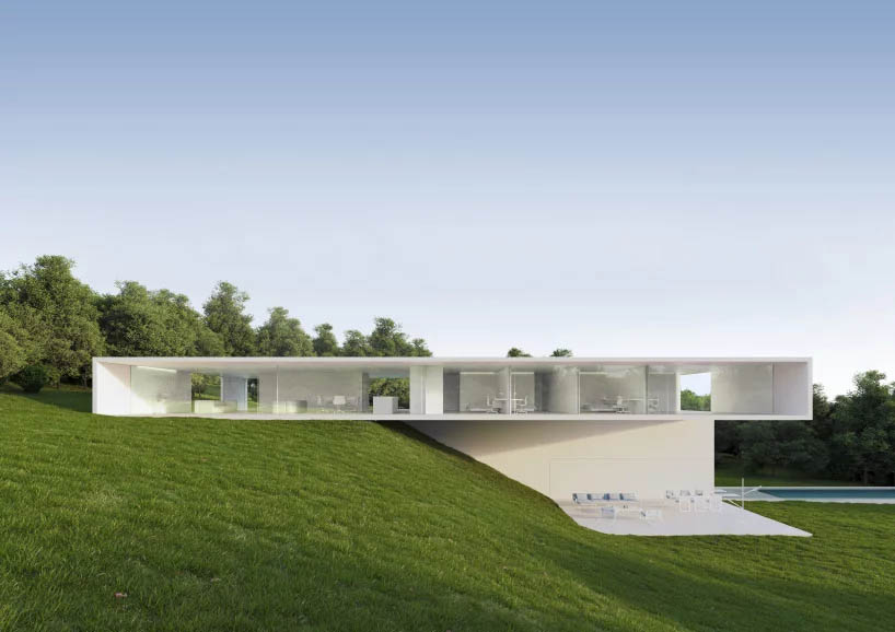 Designboom_ on a privileged plot with a steep slope, fran silvestre arquitectos has designed an all-white dwelling that negotiates the dramatic change in topography. titled ‘house in benahavís’, the property is located in ‘la zagaleta’ — a development near marbella on southern spain’s costa del sol. in order to take advantage of the site’s views, the home’s primary living accommodation is found on the upper level, which is supported by a single volume set at a perpendicular angle to the slope.