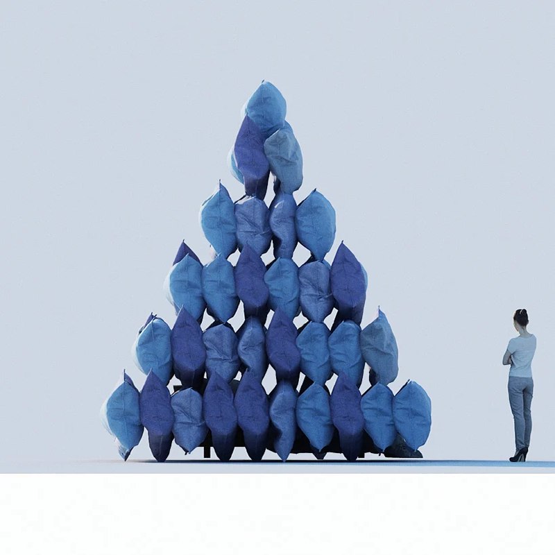designboom_using pillows as his weapon, french artist cyril lancelin of creative studio town and concrete has envisioned the ultimate fortress to combat the COVID-19 pandemic. with ‘stay at home’ being the number one advice and instruction from governments across the globe, lancelin’s pyramid of pillows takes us back to childhood memories of building dens. the pyramid is a safe refuge, a house within a house, and a warm, embracing cocoon.