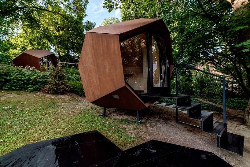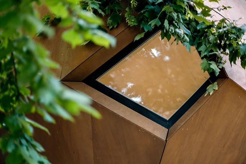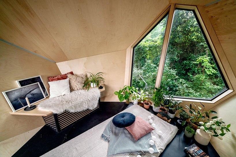Designboom_inspired by the growing, worldwide dream of a personal office space during a work-from-home era, hungary-based studio hello wood presents its ‘workstation cabin.’ this tiny, architecturally-minded home office cabin is designed to fulfill the widespread desire for a secluded, private workspace without the need for a home expansion. while the playfully sculpted timber project introduces a space for work and meetings, its flexible program functions as a guest room or children’s playroom. the workstation cabin serves as a place for work that is tranquil, relaxing, and encourages solitude and creativity.