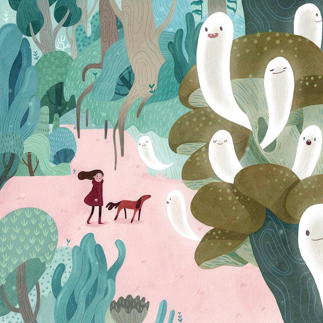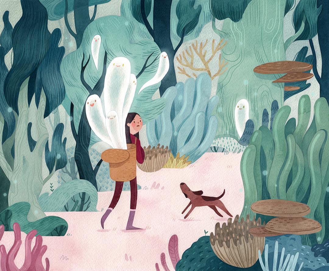 Illustrator Vivian Mineker imagines the spookiness that happens among the beauty of being into the woods.