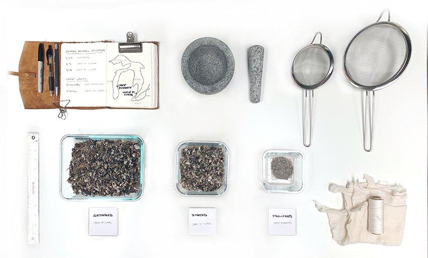 originating from russia and ukraine respectively, zebra and quagga mussels were first introduced in the USA’s great lakes in the late 1980s, causing great damage to their newly found ecostsyems. rather than view these aquatic intruders as an ecological problem, the students decided to view them simply as an over-abundant material.