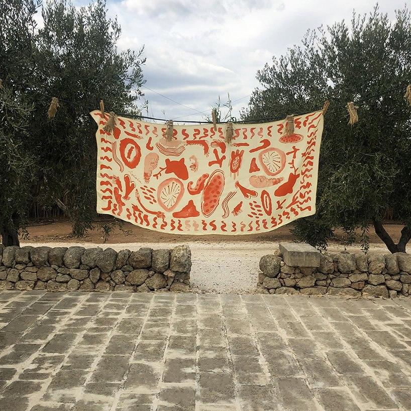 idda studio‘s new line of painterly silk and cotton fabrics is deeply influenced by colorful stories of mythological creatures, powerful volcanoes, wildflowers, luscious fruits, and the endless mediterranean. hand-painted to scale on paper, the designs incorporate expressive patterns, ornate symbols, and vivid iconography reminiscent of italian summer and ease. the paintings are then printed onto ethically sourced silk and cotton fabrics made in italy.