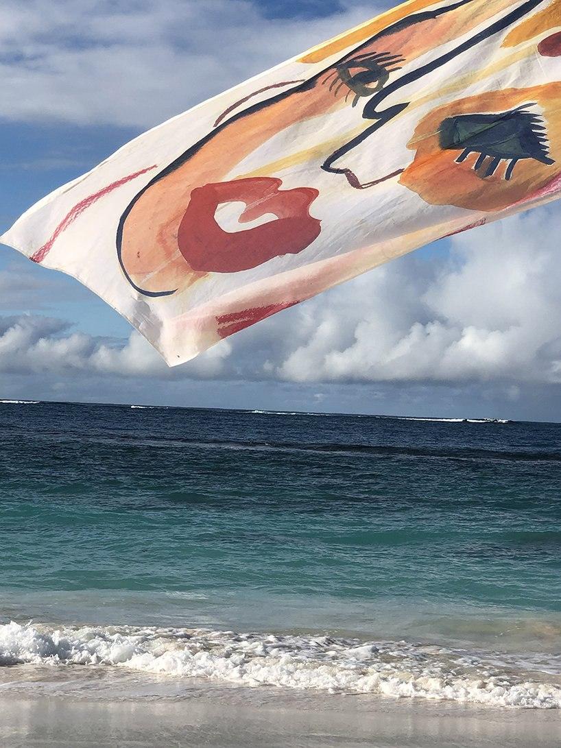 ‘on lipari, one of the eolian islands where my family is from, women of all ages live in fabric pareos throughout the hot summer months’ shares picone. ‘a simple piece of fabric can be so versatile: worn in your hair, wrapped around your neck, draped as a dress, tied into a skirt, carrying fruit or even swaddling a child’.