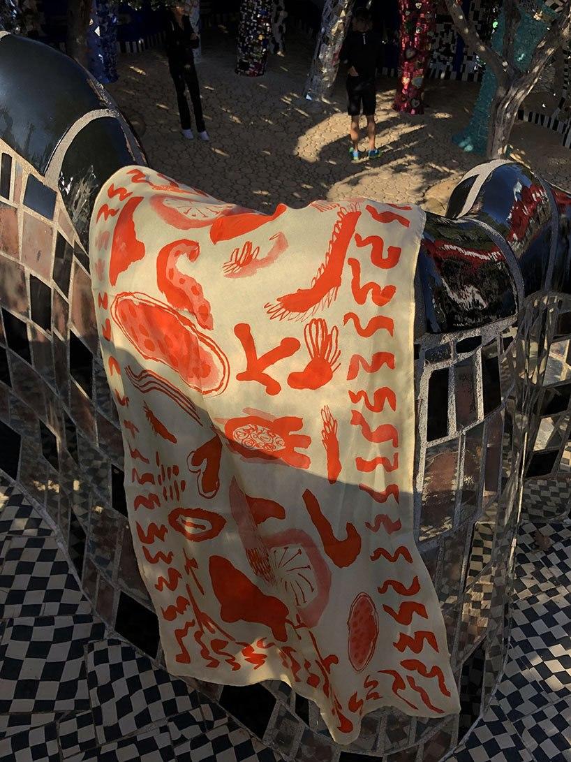 Designboom_artist and designer gabriella picone has launched her new company, idda studio, with a debut collection of vibrant fabric artworks inspired by sicily, italy. meaning ‘her’ in the sicilian dialect, idda celebrates the history and traditions of the mediterranean island with a painterly collection of scarves in silk and cotton.