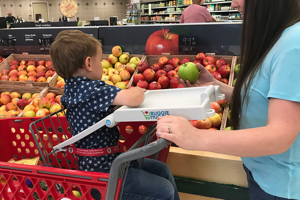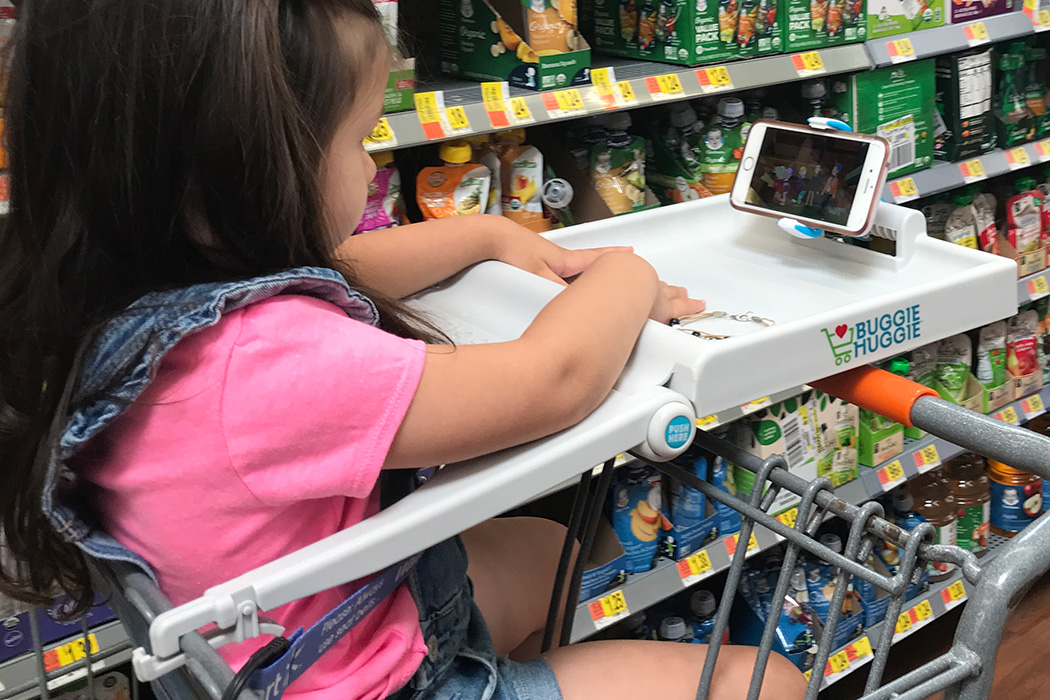 79% of those kids (mostly under 4 years old) injure their heads by falling. That’s why they created the Buggie Huggie shopping cart tray: they want to help you keep your toddler safe and entertained while giving you back your peace of mind.