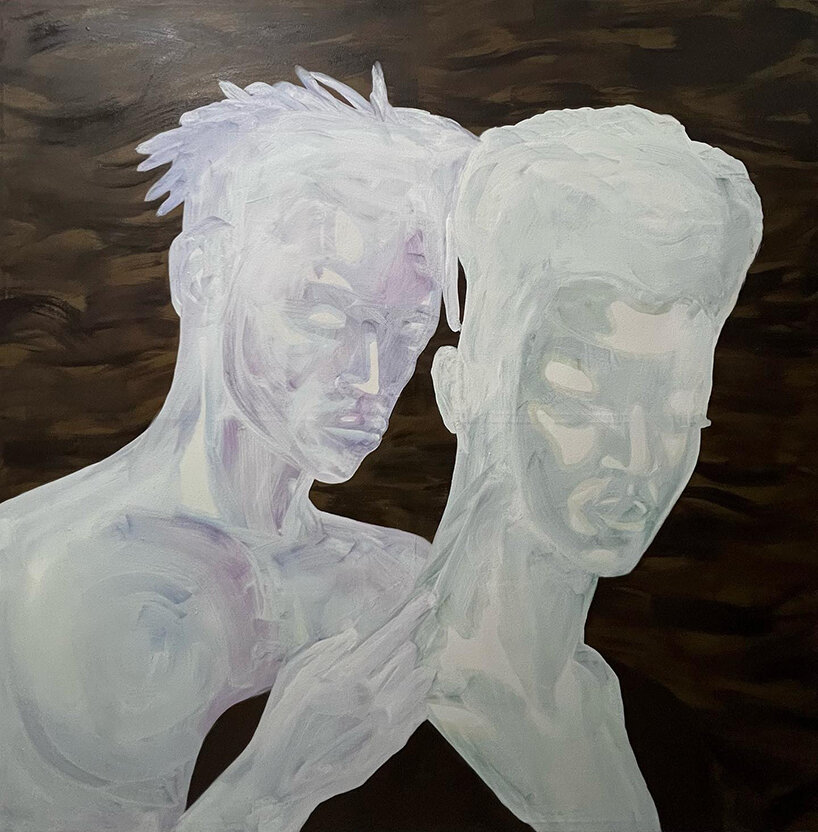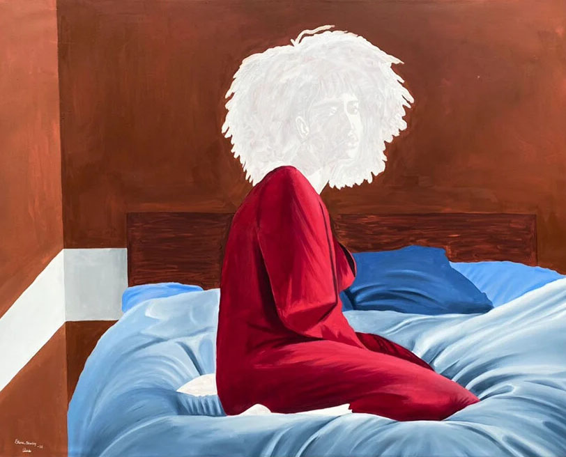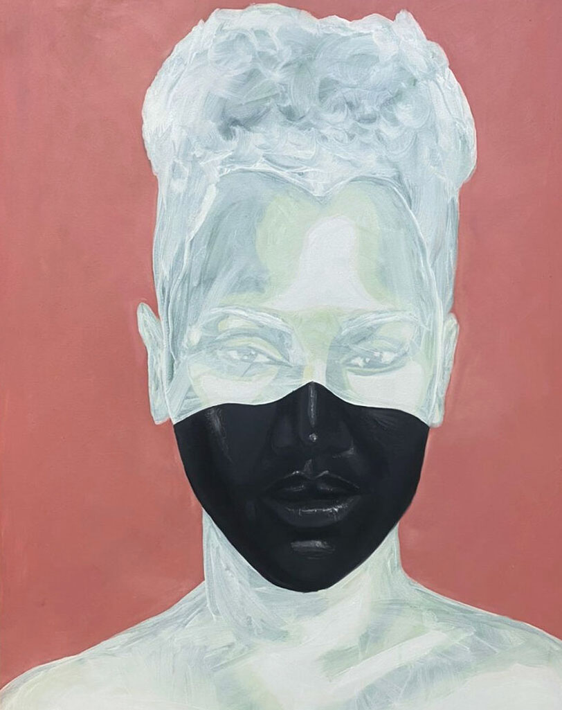 each canvas starts with the deliberate elimination of the protagonist’s skin color, over which the artist frames the subject’s posture and characteristics. the resulting portrayals seek to unravel the identity of the dark-skinned figure that comes with a story behind it: steeped in stillness, confidence, and boldness.