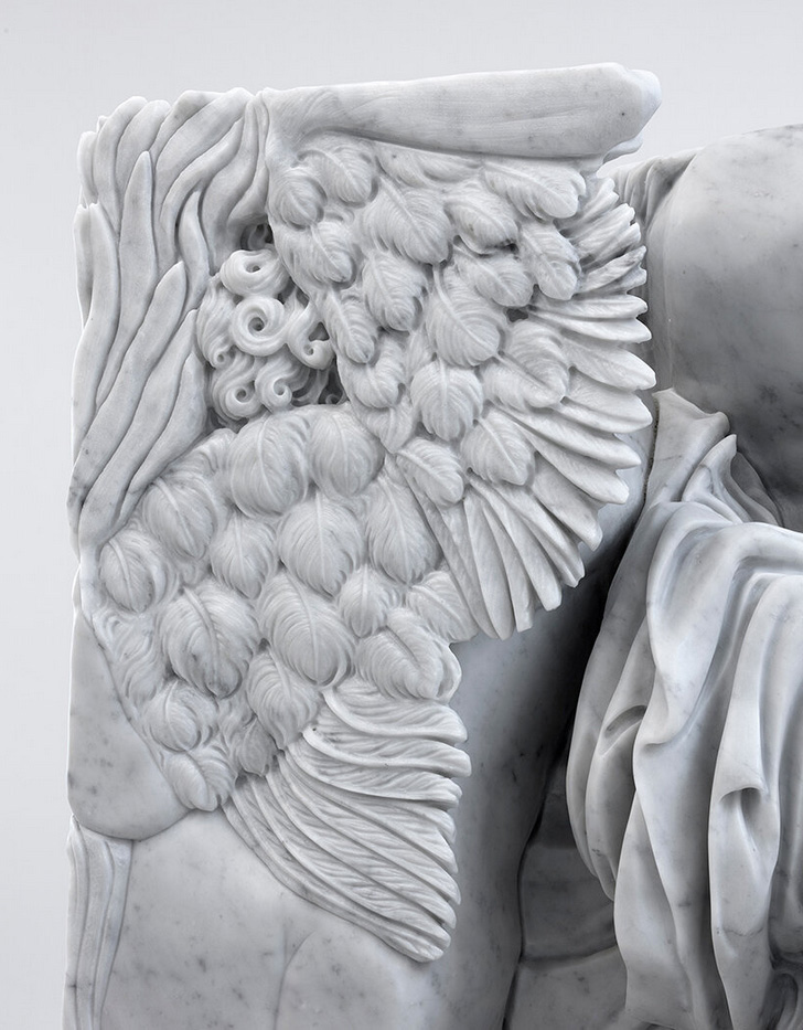 Working with a team of master carvers, a seven-axis reductive robot, and the digital research teams at museums like the Uffizi, Adam Parker Smith has rendered some of the greatest hits of Hellenic and Baroque sculpture in 3D modeling programs, before compressing each digital form into a compact cube, and meticulously chiseling the sculptures out of a Carrara marble block.