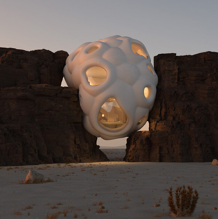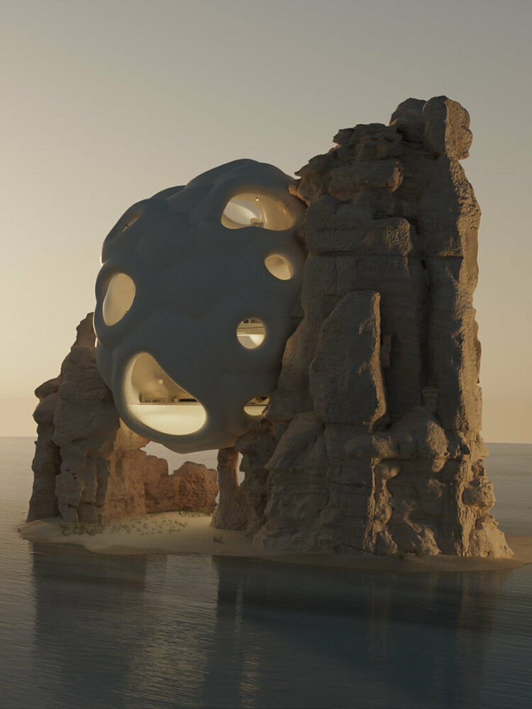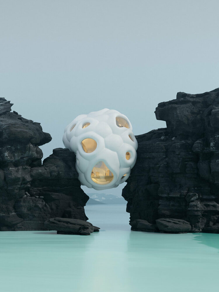 Six N. Five’s make room for us is an architectural project in the digital universe, which not only proposes to adapt architecture to nature, but speaks of our repentance and forgiveness for the damage we have caused in the physical world. Now it is our turn to adapt to what has always existed. Through adaptive designs that mimic cellular organisms, they propose an architectural system that interacts with nature in an imaginary ecosystem of cliffs, mountains, and virtual dreamscapes. This exploration is nothing more than a narrative translated into visual concepts that aim to learn and respond to our environment, to make ourselves at home