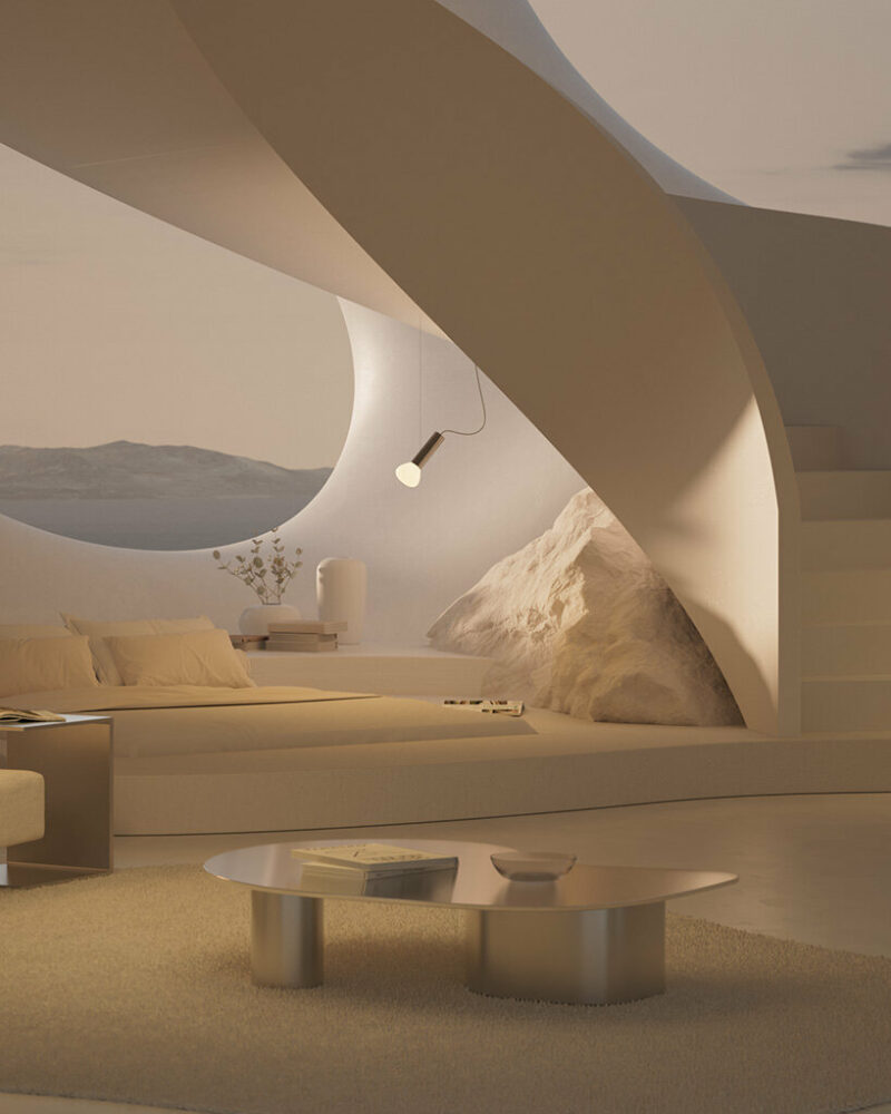 Alexis Christodoulou Studio is the front runner and pioneer of the imaginary architecture aesthetic across the world. This work, dubbed the Mirage is the metaverse’s first ‘personal levitation center’ — designed for one’s enjoyment and spiritual transition into a digital existence. Built around the simple contradiction of gravity through various points of the day – each edition of the Mirage exhibits a unique tone to mimic the position of the sun as it floats above. Christodoulou implores everyone to start their virtual existence in the Mirage — without all the weight of the physical world.