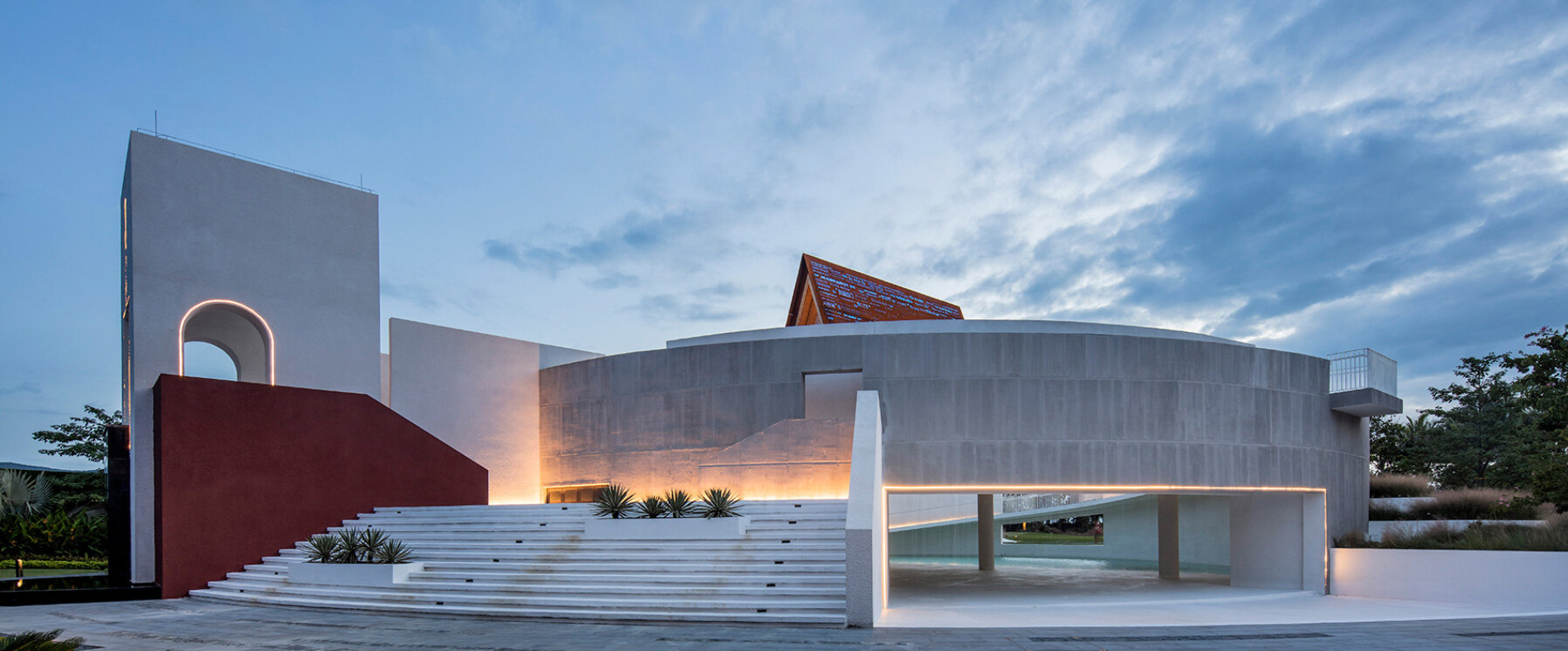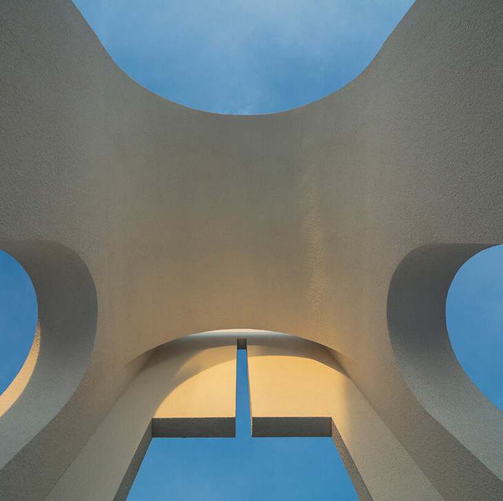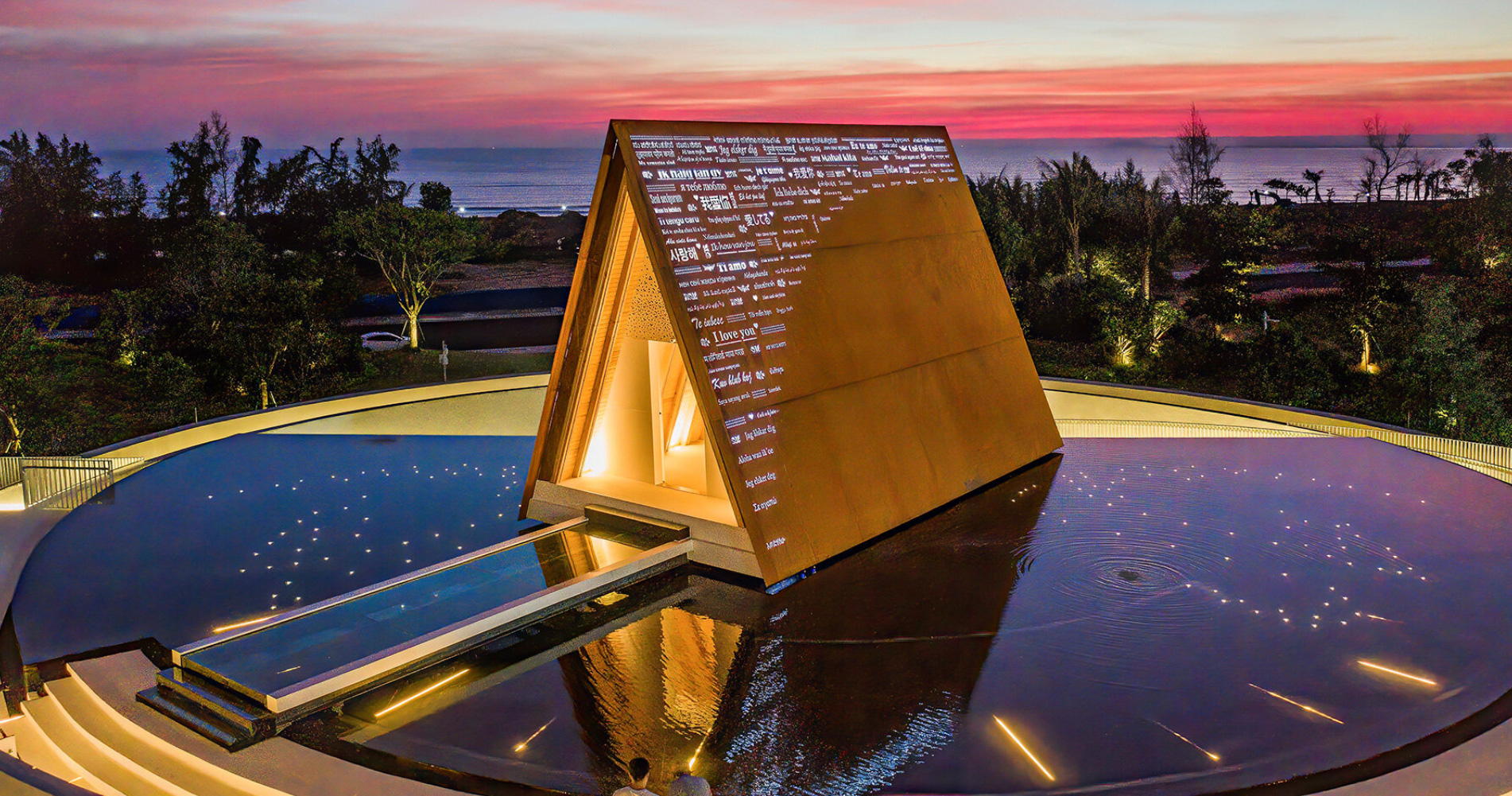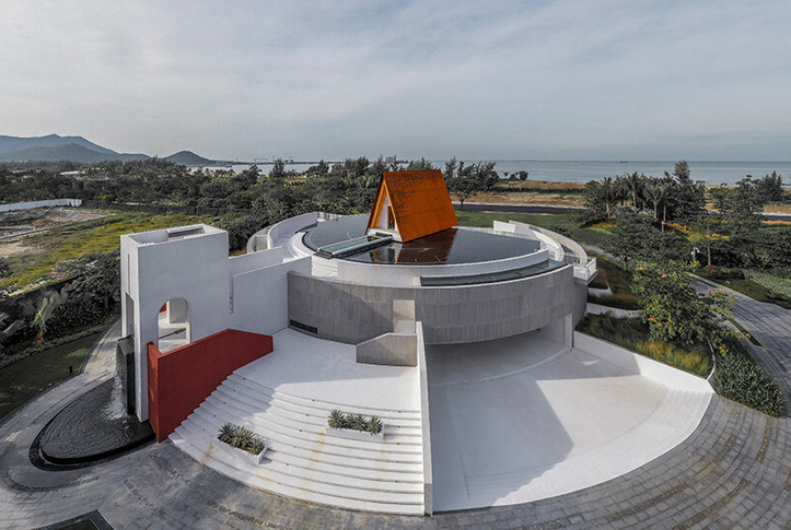Designboom_ shanghai-based UDG (shanghai united design group co., ltd.) has completed the dysis church of poly shallow sea. located on the south edge of mainland china, the project faces the vast south china sea, embracing the most essential elements in nature — sea, sky and sunset. these have been combined with two artificial elements — a triangle and a circle — revealing a poetic expression of time, eternity and sanctity.