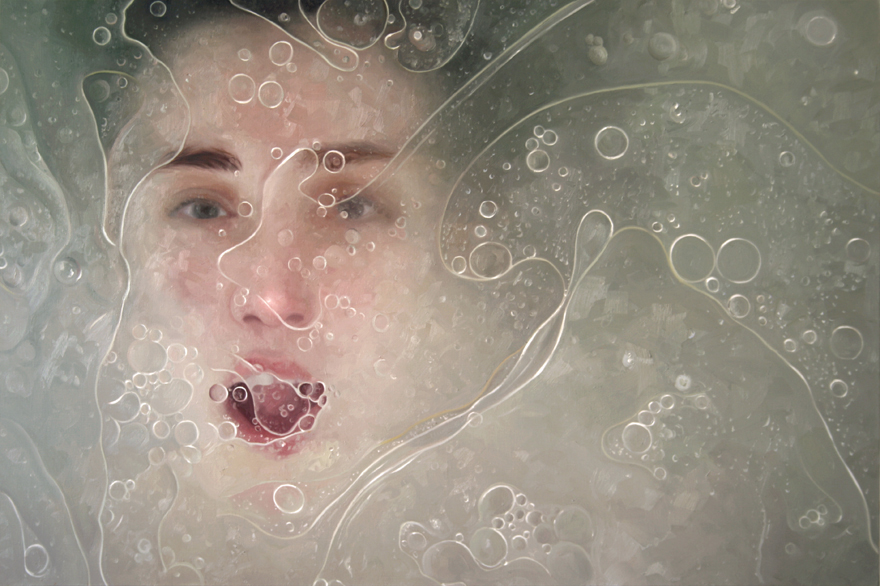 The paintings included in this exhibition feature large-scale portraits of Monks and those closest to her, portrayed in vulnerable or intimate contexts. Often capturing fragmented elements of a scene, or layering together various spaces and moments, Monks’ works disorient the viewer and invite reflection on one’s own vulnerability. Through the use of thickly applied brushstrokes, and her tendency to flip the background and foreground in her work using semi-transparent filters of glass, vinyl, steam, water and or foliage over shallow spaces, Monks creates surface tension in her work that eschews easy interpretation of her subject matter.