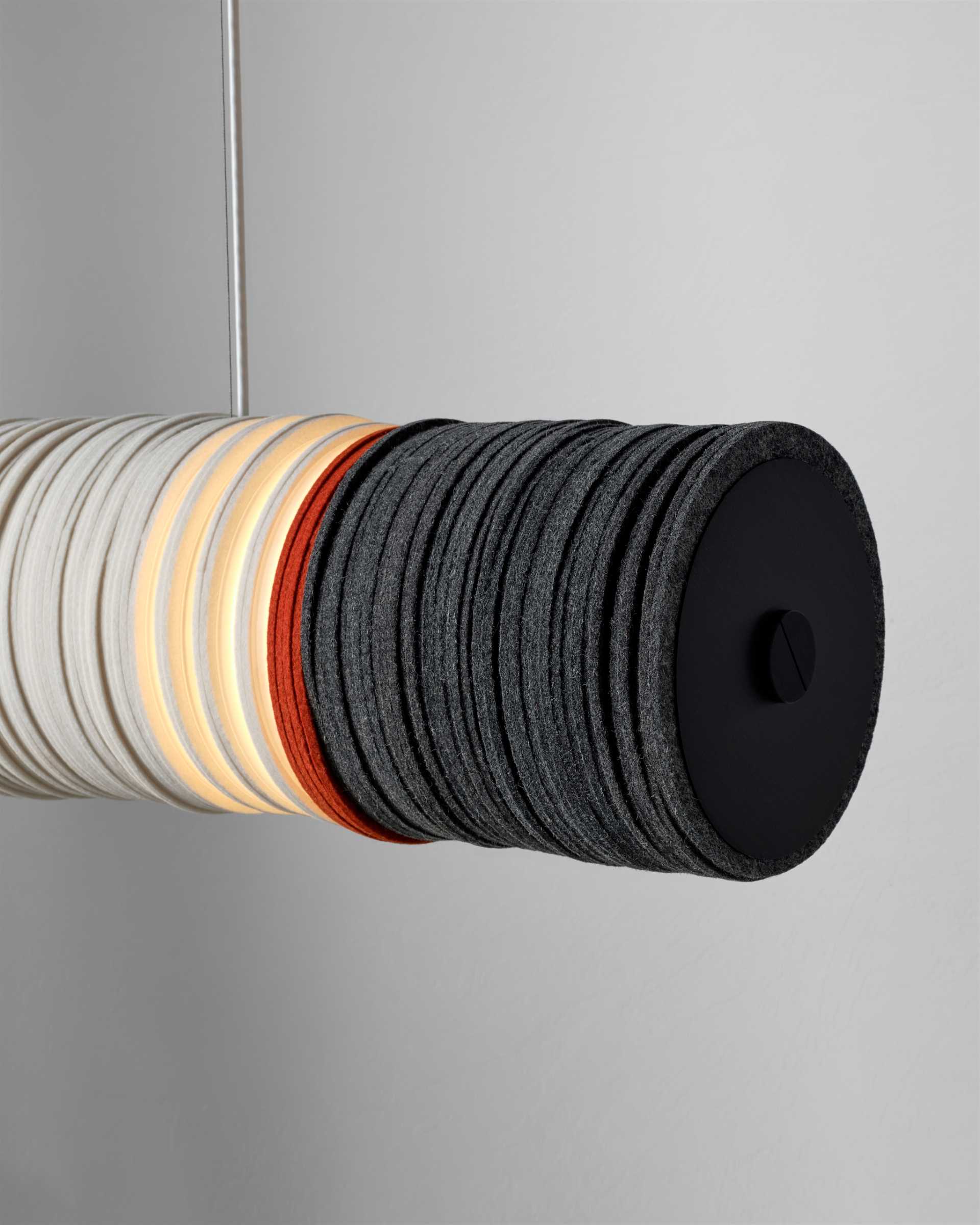 The collection, of which multiple designers created different looks, is made from upcycled felt and aluminum, and uses powerful, yet energy-saving LEDs