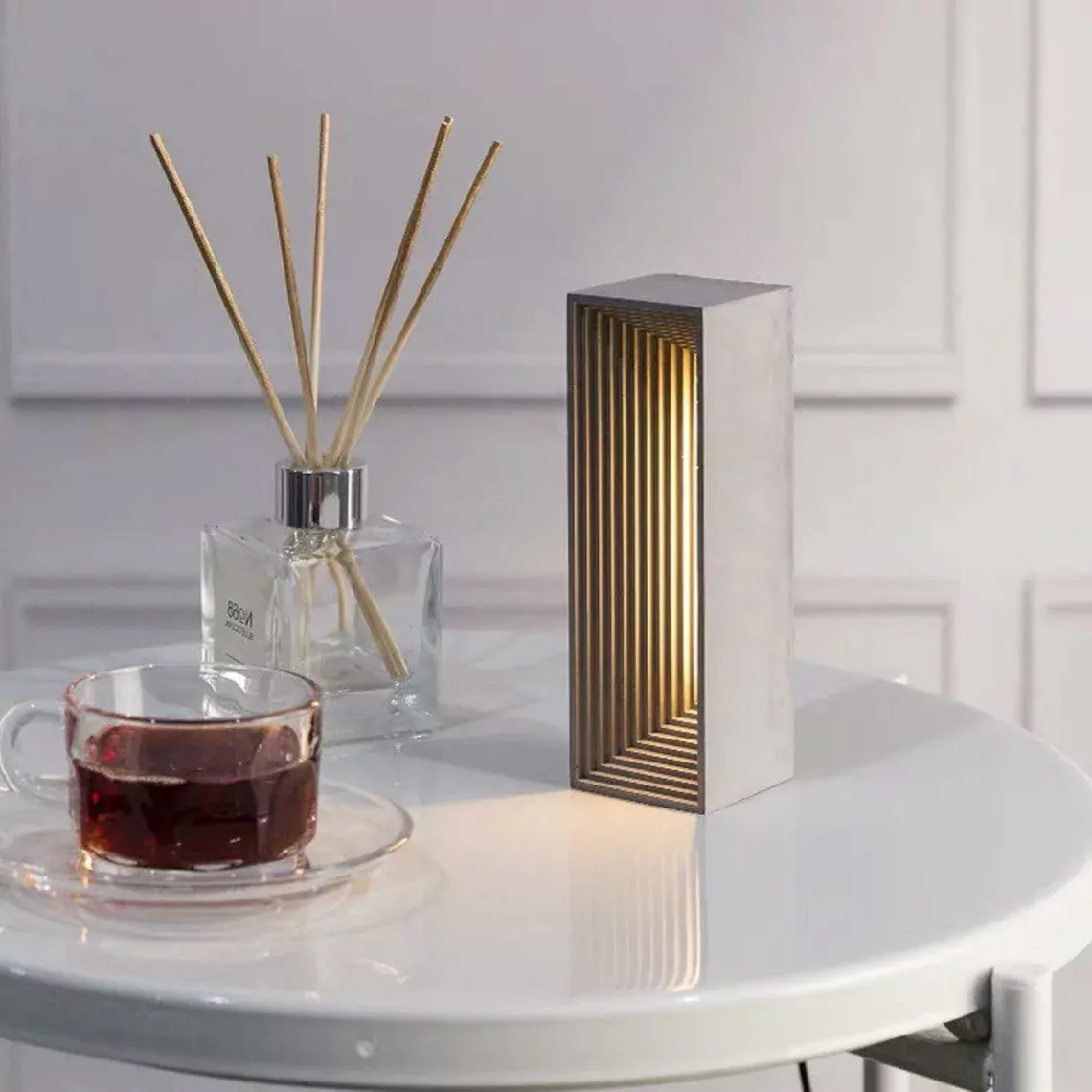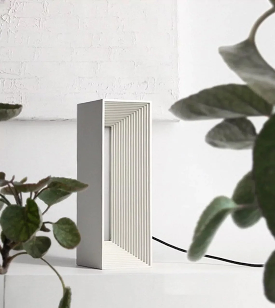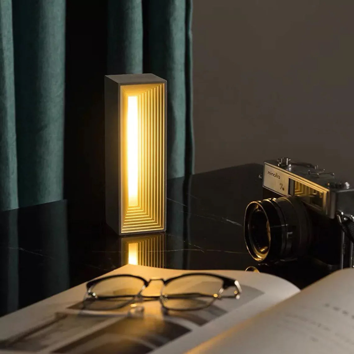 Beautifullife_ MMEP Studio’s unique accent light brings a modern look into any space. This minimalist modern lamp is made with hand-polished concrete and features a stepped and angled interior that makes it appear its LED light source is at the end of a corridor. Each lamp is individually made and has unique characteristics inherent to the production process. Colors and textures may vary between each casting. It measures 9″H x 3″W x 3″D and is powered by a USB cable.