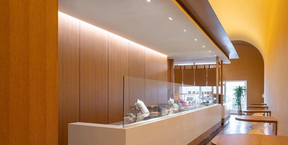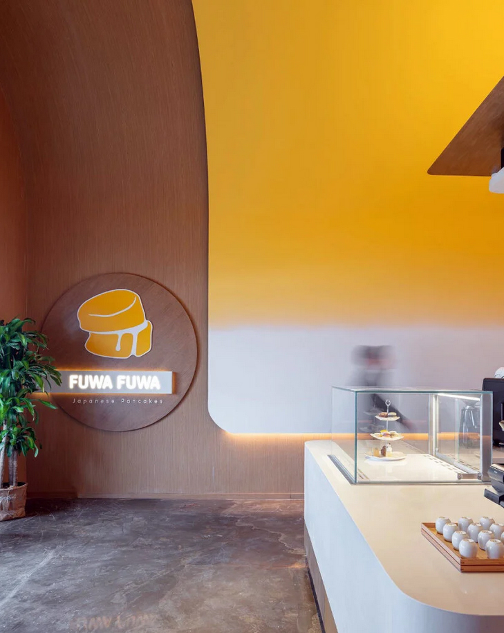 ‘All the while, the design infuses visual traits of Japanese design to reflect the Japanese-style dessert that it serves,’ the team addsin its write-up. When diners step in, the soft curve and bright yellow of the high canopy frame their vision from the get-go, the sense of a modern temple penetrates their first impression.‘Light emanates from it, softly brightening all corners of the space. It is flanked by corridors on either side,’the design team continues.