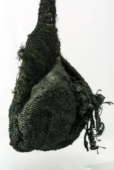 The Polish artist Magdalena Abakanowicz (1930-2017) was a weaver of sculptures. What she did was so radical that it startles even today. She took the conventional flat hanging tapestry woven for thousands of years and remade it in three dimensions. Her weavings are vast objects suspended in space that might feel human – great heads, enormous anatomies – or might be organic, from hills to boughs to serpentine coils and lianas.