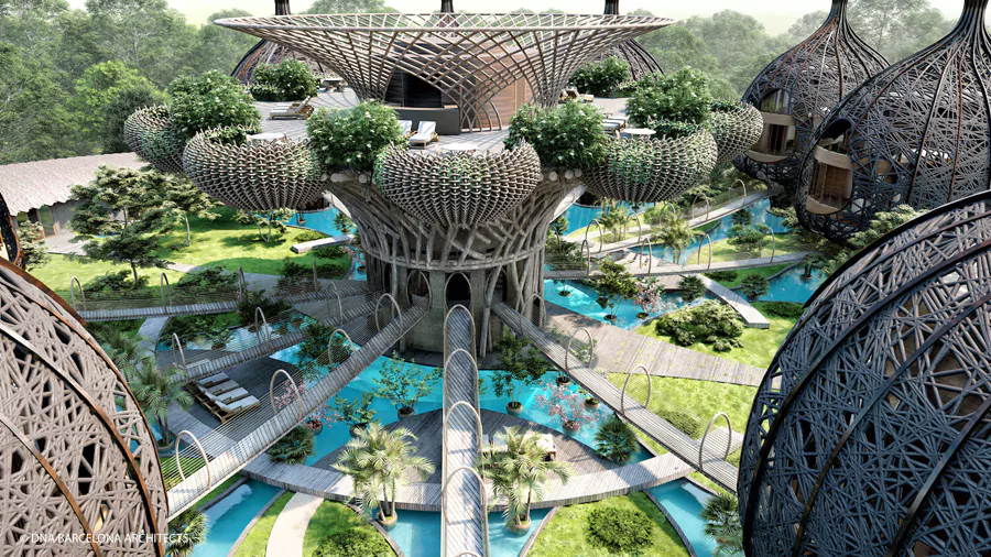 The “Tree Life” in Tulum was born from the clients desire to generate a new experience. From a conceptual point of view, in DNA we always aim towards the fusion between art and technology and in this case, we sought the fusion between nature and architecture, which generates the word, as we call it in DNA, “Archi-Nature”.In this way, we take inspiration from the bird’s nests, and from them our design process in DNA begins.
