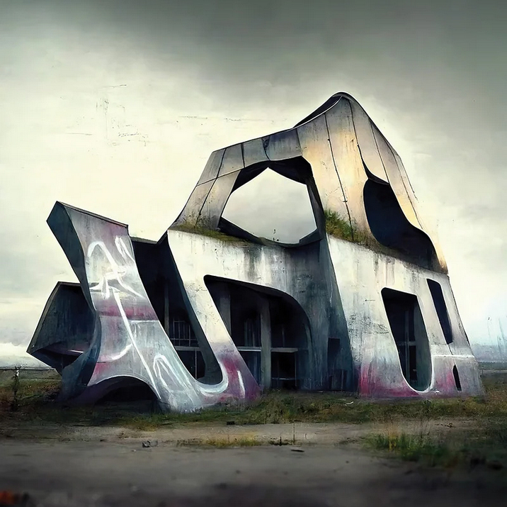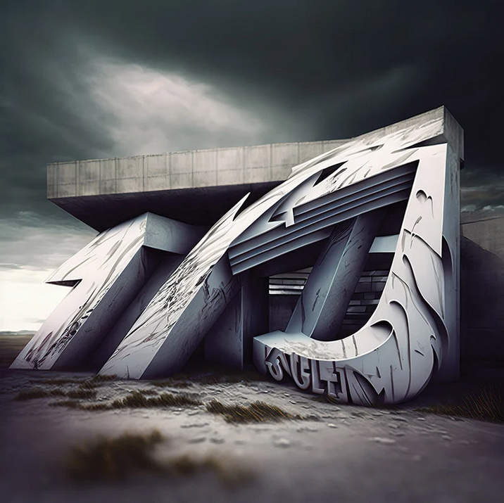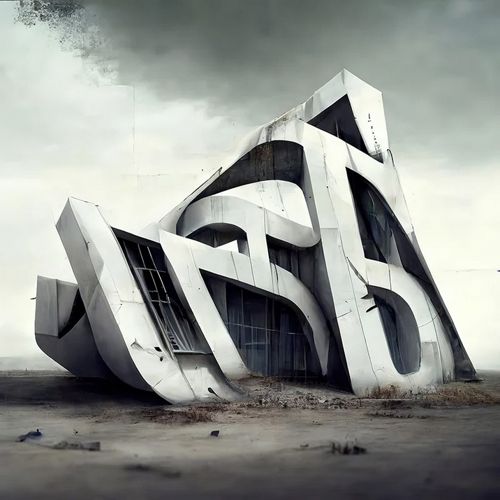 Designboom_ What happens when graffiti tags influence the architecture of the buildings they once adorned? Graphic designer, digital artist, and visual storyteller Marcus Byrne asked himself that question before venturing into the world of artificial intelligence for his latest project, ‘When life imitates art.’ Using the popular text-to-image software Midjourney, he envisions graffiti tags as embodying the shape of abandoned buildings, each backdropped by a dystopian and grim landscape. According to Byrne, this speculative AI-generated series celebrates the beauty in the decay and how ‘spray can give us the freedom to express.’