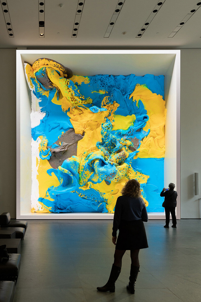 The AI-based abstract images and forms resulting from the machine’s unsupervised learning about modern art will be dictated by the museum’s collection archive and aligned with the special exhibition of new artworks at MoMA this fall. Unsupervised will continuously generate new forms on a large-scale media wall measuring approximately 24 × 24 feet in the Gund Lobby on the museum’s first floor.