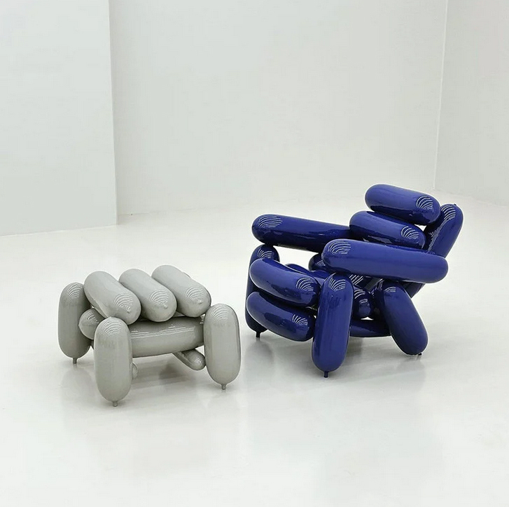 Designboom_ Seoul-based designer Seungjin Yang unveils the latest pieces in his ‘Blowing’ chair series, in which he covers party balloons with epoxy resin to create a variety of seating options. Though it may seem like they’re about to pop at any moment, the resulting pieces are sturdy enough to be the latest candy-colored addition to your living room. The handmade series includes a variety of shapes and colors, including a beige loveseat that will be on display at Design Miami 2023.