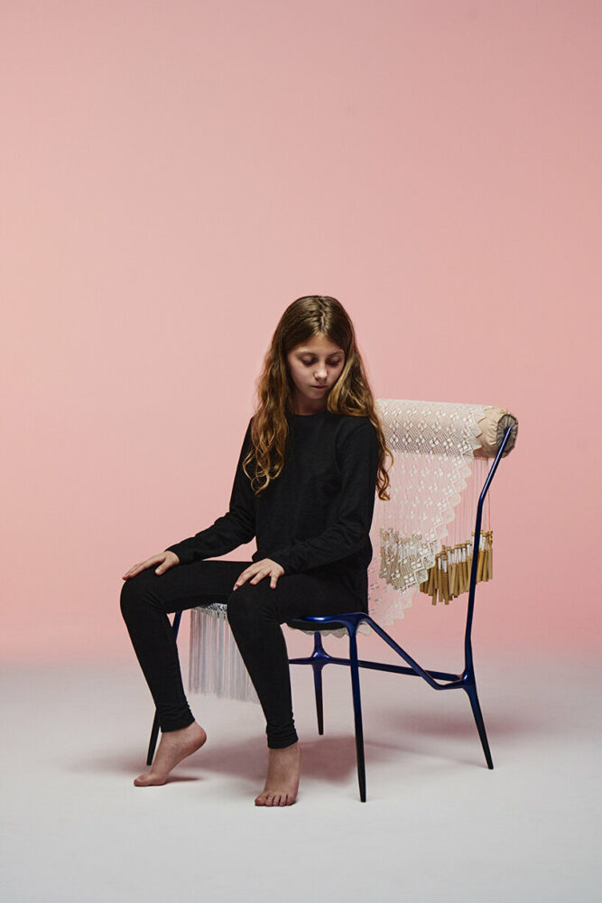 ‘The project, which uses the Spanish context as a case study, explores bobbin lace in tablecloths, rugs, curtains, and many other textile elements as key in configuring contemporary domestic interiors in Spain and elsewhere. In this country, this phenomenon remains inextricably linked to the backward steps in gender equality undertaken during the Francoist dictatorship (1939-1975). ‘UMT’ subverts the historical consideration of bobbin lace as ‘ornamental’ and ‘superfluous’ in architectural production by making the lace the main structure of an essential, male-associated element in design history: the chair,’ continues the architect.