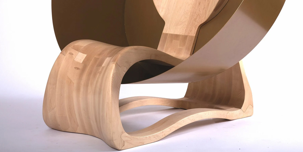 With minimalist, organic forms, Lee Ye Chan’s ‘Goyo’ meditation chair, a huge singing vessel, provides a quiet space to reflect. While the engulfing bowl shape encourages users to rid themselves of distractions, the smooth wooden surface creates a comfortable seating experience moulded to the contours of the human body. The backrest and seat are further angled for comfort, allowing the user to lean back as the instrument exudes meditative wavelengths and frequencies.