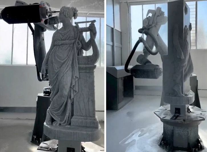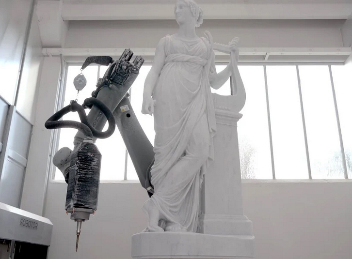 Designboom_ Works of great artists can now be replicated – and potentially replaced – using a robot chiselin Italy driven by self-programming software. Named Robotor, the automated chisel carves its way into the new era of sculpting. Users can feed data into a robot that can produce magnificent and thoroughly detailed marble and stone sculptures. Better yet, the robot itself can just work on its own.